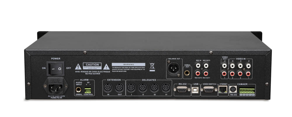 ü 四路话筒连接,每路支持30个单元,可接120个单元,12支主席单元