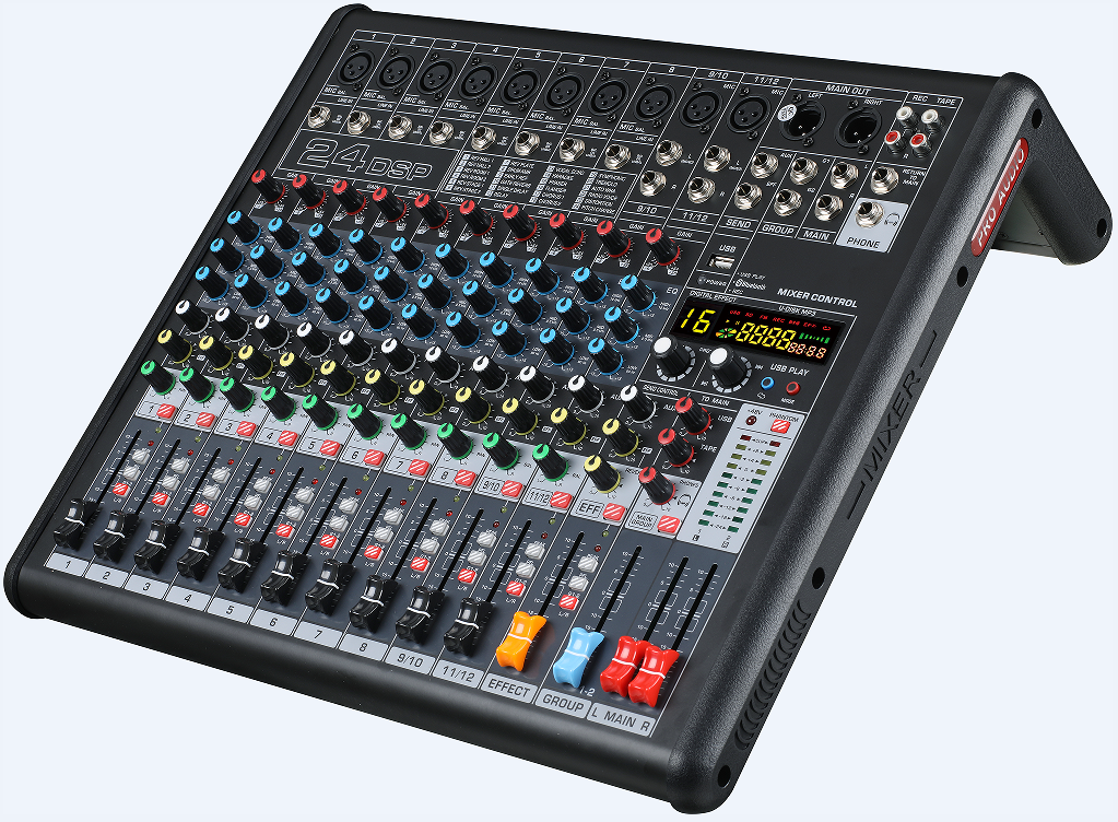 u 每通道3段均衡调节,MUTE静音开关,PFL耳机开关,平滑60MM行程推子器,